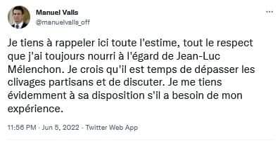 Encore mieux, lui qui a dit les pire choses sur la NUPES aurait tweeté un texte qu’on a de la peine à valider :