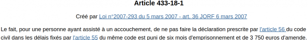 La loi force d’ailleurs la personne du père, et à défaut, toute personne ayant assisté à un accouchement, à déclarer la naissance de l’Être-Humain vivant, auprès d’un officier de l’étal civil, sous peine de lourdes sanctions.