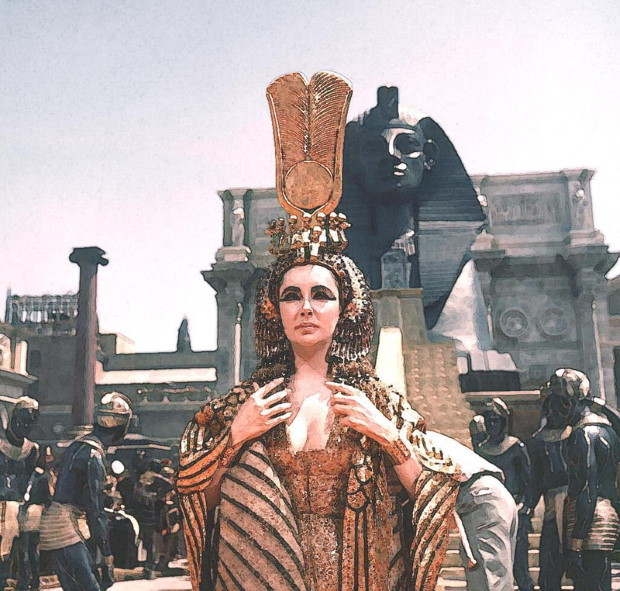 Somptueuse, elle l’était au sommet sa gloire, en reine Cléopâtre, dans "Cléopâtre" de Rouben Mamoulian puis Joseph Mankiewicz (sorti le 12 juin 1963), avec Richard Burton dans le rôle de Marc Antoine. C’était à l’époque où elle était l’actrice la mieux payée d’Hollywood et ses liaisons avec Richard Burton défraya la chronique au point d’avoir mis en danger le tournage de ce très long-métrage (248 minutes !). Cette passion explosive, étalée dans les journaux, fit scandale (car les deux tourtereaux étaient déjà mariés).