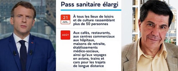 Macron cherche à imposer la vaccination obligatoire qu’il ne peut décider légalement à l’heure d’aujourd’hui en contournant la loi de par l’imposition administrative d’un pass sanitaire et d’un contrôle des comportements.